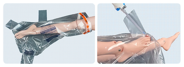 The EB model is designed to contain and create a water tight seal around an arm, leg, hand, foot, and head wounds.